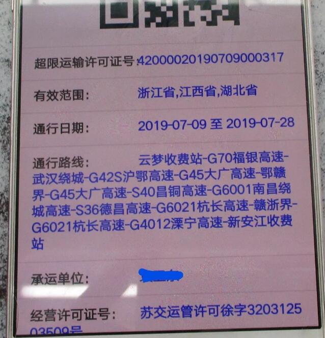 可通過(guò)《超限運(yùn)輸車輛通行證》左上角提供的查驗(yàn)網(wǎng)址(二維碼)進(jìn)行驗(yàn)證。