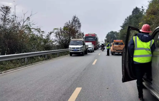 此時(shí)開路先鋒攔停了過(guò)往車輛,待大件運(yùn)輸車輛安全通過(guò)以后才能放行。