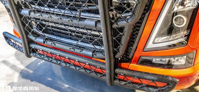 之后,車(chē)輛轉(zhuǎn)移到CCH公司,進(jìn)行結(jié)構(gòu)的適應(yīng)性改裝。車(chē)輛安裝了頂部燈架,并在上方安裝了四個(gè)大功率探照燈。為了契合整車(chē)的風(fēng)格,遮陽(yáng)板也被涂成了橘紅色。燈箱上的SVETRUCK字樣采用白色粗體,營(yíng)造出了富有活力的撞色效果。