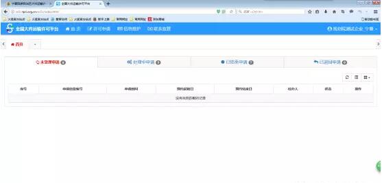 1)、企業(yè)用戶登錄首頁面,可查看處于不同狀態(tài)的申請(qǐng);