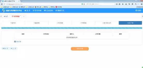 2)、許可申請(qǐng),點(diǎn)擊頁眉處【許可申請(qǐng)】按鈕,彈出頁面,即可開始填寫申請(qǐng)信息。