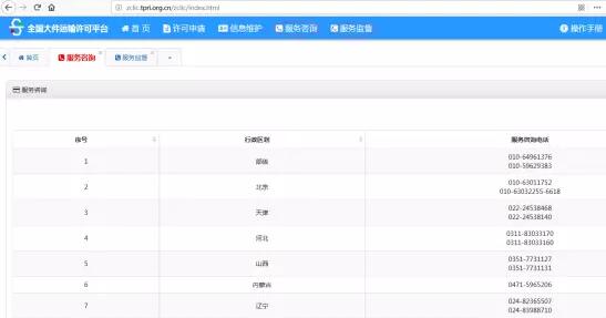 1)企業(yè)用戶成功注冊后,登錄網(wǎng)站,此時(shí)用戶尚不能進(jìn)行業(yè)務(wù)申請(qǐng)。應(yīng)電話聯(lián)系企業(yè)注冊省的協(xié)調(diào)人員申請(qǐng)核查企業(yè)資質(zhì),點(diǎn)擊頁眉處的【服務(wù)咨詢】,查詢本省協(xié)調(diào)員電話聯(lián)系。