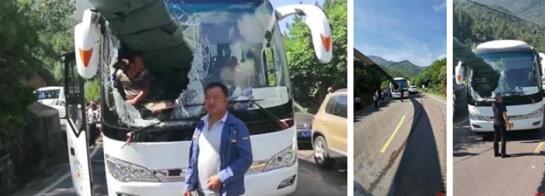 驚險!葉片貫穿大巴車
