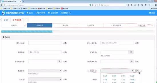 3)、按要求填寫各項(xiàng)申請(qǐng)信息,包括基礎(chǔ)、車貨、車輛、相關(guān)證件、護(hù)送方案信息;